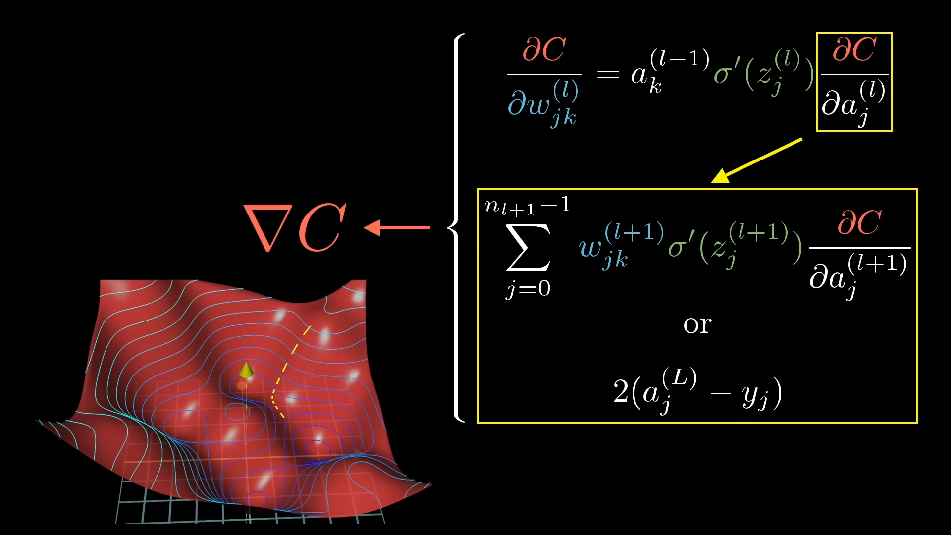 To minimize , we move the parameters a little bit in the direction that makes the loss decrease fastest, that direction is given by the negative gradient of the loss with respect to .